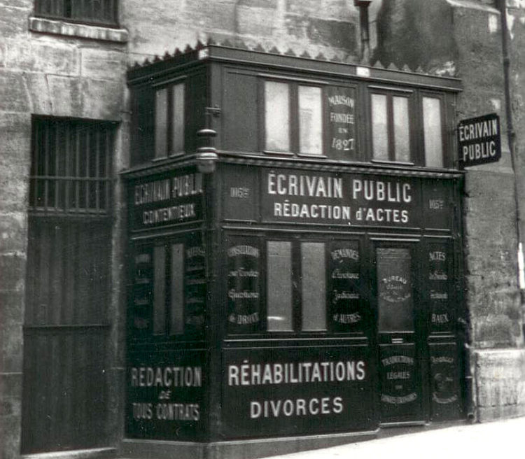 L’ancêtre de l’écrivain public n’est autre que le scribe de l’Égypte antique ! Il est, au sens littéral du terme, celui qui pratique l’écriture. Son activité consistait à écrire et recopier à la main des documents privés, des textes officiels, administratifs, religieux et juridiques à une époque où l’imprimerie n’existait pas et où les lettrés étaient rares.
